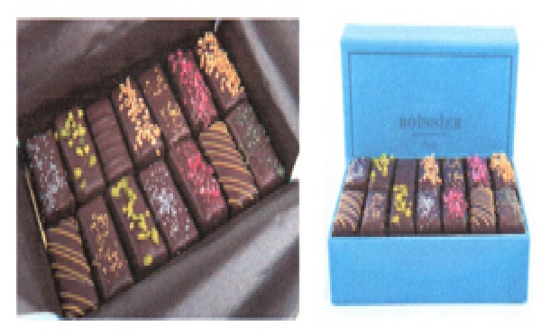 Collection Noël. Noël, une tradition revisitée à travers une originale collection de bleu, de déco gourmande, de boules de chocolat, de rouge et de lumière, un partage d'amour et de goût simple des friandises de notre enfance... Assortiment de délicieuses pâtes d'amandes parfumées enrobées de chocolat (168 g) Parfums : rose,...