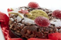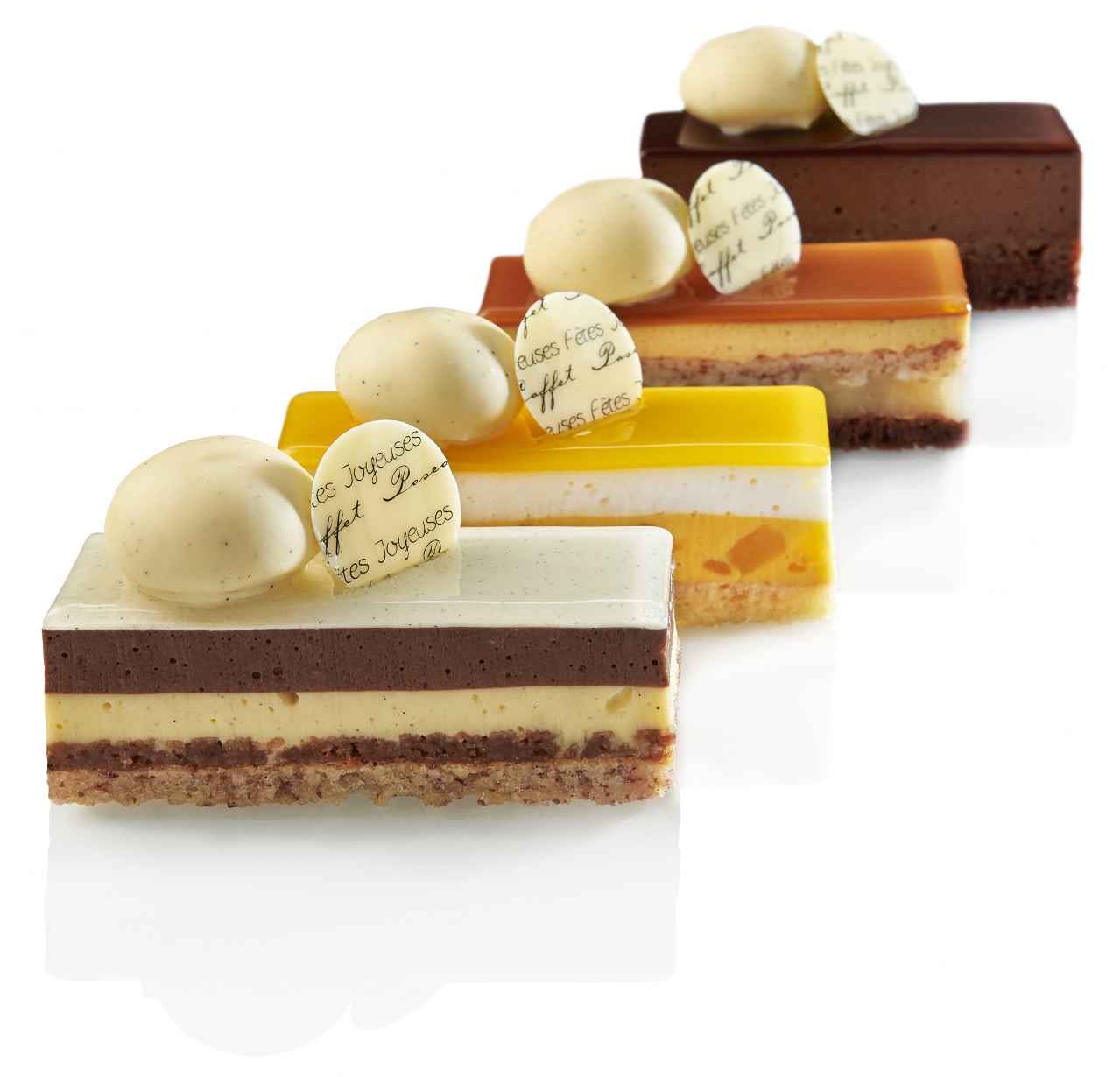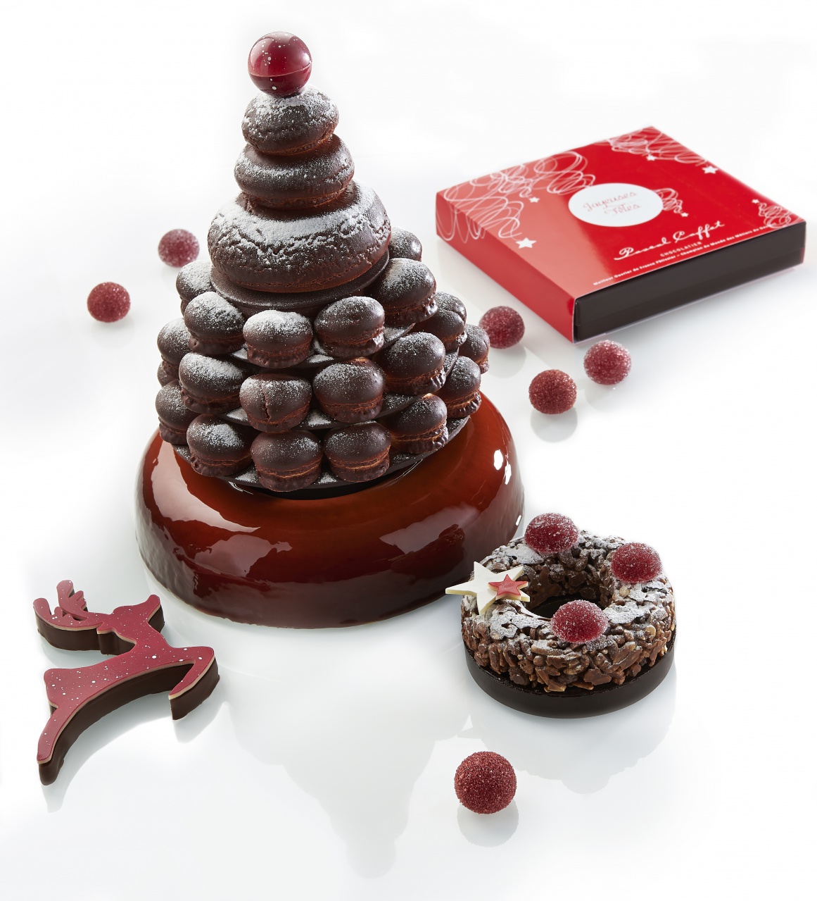 Les desserts de la maison se déclinent tout en rondeur pour ce Noël 2015. Le sapin de Noël s’invite à vos tables sous son manteau rouge et blanc dans un Entremets Féerique qui superpose les saveurs vintage des meringues traditionnelles à la crème au beurre et du praliné maison à l’ancienne à un duo de croustillant feuilleté praliné et de mousse au chocolat 70% Venezuela.