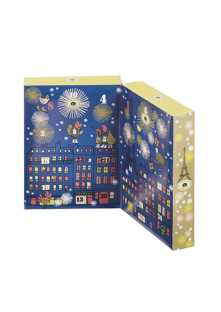 Le calendrier de l’Avent quant à lui nous emporte dans la chaleur d’une douce nuit parisienne feutrée, très étoilée, parcourues par les célèbres Cocottes. Trois décors, trois aperçus différents mais surtout les petits plaisirs gourmands tels que Praslines et délicates pâtes de fruit. A picorer tout au long du mois de décembre…