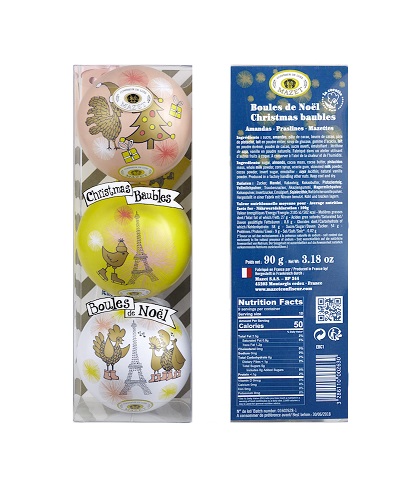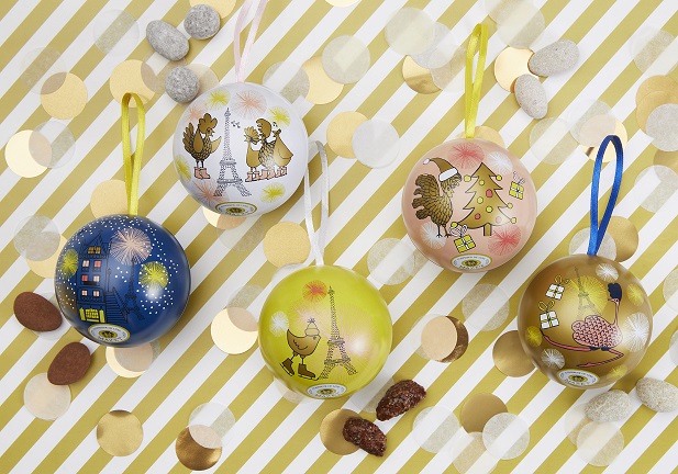 Le look de la collection des fêtes de fin d’année est le résultat de l’association des designeuses de la Cocotte Paris à la réalisation des décorations des emballages. Ainsi, vous pourrez découvrir des petites boules de sapin ornées de petites poules coquines dans un décor parisien, superbes, et surtout très gourmandes puisqu’elles cachent en leur sein de délicieuses spécialités de la Confiseries.