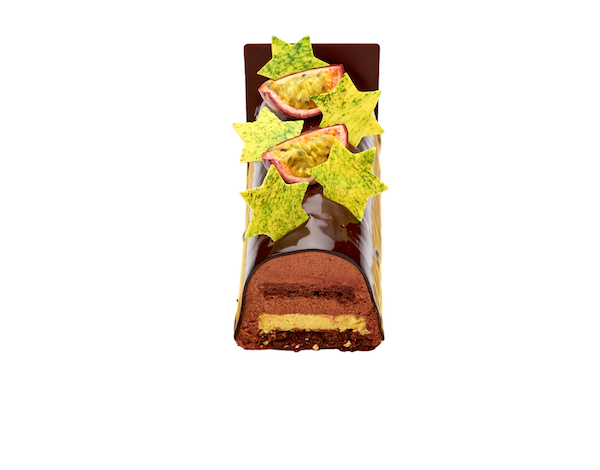 Pour des moments de plaisirs rien de plus intéressant que des créations au goût et une texture unique comme la bûche Morant Bay réalisée par la maison Saibron. Bien qu’étant hiver, les papilles gustatives pourront se réchauffer grâce à cette bûche tropicale dont les ingrédients sont délicatement sélectionnés. Elle est constituée d’un biscuit croustillant fait à base de riz soufflé et crêpe gavotte ; d’un crémeux aux fruits de la passion. Le pâtissier Dominique Saibron utilise également du pur chocolat noir 70% Morant Bay provenant des plantations d’exception de Valrhona. Cette fève de cacao est récoltée et préparée dans la réserve naturelle de Bath Fontaine afin de profiter au maximum de son arôme et sa saveur singulière. Les étoiles vertes et jaunes qui décorent cette création font référence aux couleurs du drapeau de la Jamaïque.