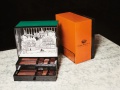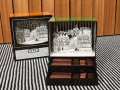 Une poésie nostalgique qui annonce un voyage au cœur d’un vieux souvenir d’enfance : les barres chocolatées, échangées dans le temps dans les cours d’écoles. Pierre Marcolini remplit les tiroirs de ce coffret à surprises de deux réinterprétations haute couture de cette gourmandise mythique. L’une offrant sous un enrobage de chocolat noir et un croustillant praliné, un cœur de caramel tendrement vanillé. L’autre revisitant le gianduja dans un praliné noisette, amande et brisure de noisette sous un croustillant praliné enrobé de chocolat au lait. Portant l’empreinte des choix éthiques et grands crus de la Maison, elles sont accompagnées par l’assortiment 9 Pralinés Anciens et son cortège de saveurs vintages de fruits secs...