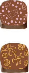 Ganache au chocolat au lait, à la fleur d’ylang-ylang des Comores et la pulpe de fruit de la passion, enrobée de chocolat au lait. Harmonie des saveurs amère de la fleur d’ylang-ylang et acide du fruit de la passion.