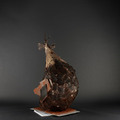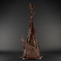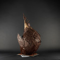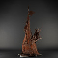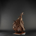Plein feux sur le coq en chocolat noir. Le bec pointu sous sa crête en bataille, les barbillons rouge vif sur un plumage de chocolat noir : il a une sacrée allure ce coq !