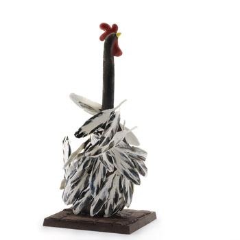 Ce coq à l’allure déjanté et au look rock’n roll renferme de délicieuses fritures au chocolat noir et au lait.
