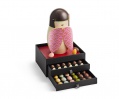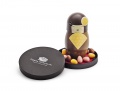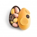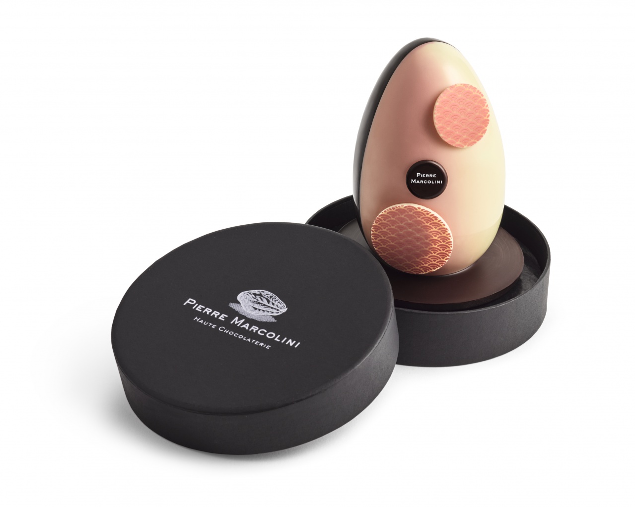 La poupée Kimono par exemple est juchée sur deux tiroirs contenant des petits œufs nacrés au praliné noisette chocolat au lait, praliné amande chocolat blanc, praliné nougat chocolat au lait et d’autres, et une farandole de petits animaux en chocolat. Les grandes poupées se déclinent aussi en miniatures aux deux saveurs et leur œuf assorti. La maison Marcolini propose aussi des œufs garnis et coffrets aux couleurs de la nouvelle collection pour les esprits plus traditionnels.
