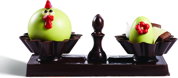 Sur une note plus classique mais tout aussi originale, Réauté Chocolat a créé un ravissant mélange entre un œuf et une poule, Huguette et Odette deux poules toutes rondes à croquer ! Présentés dans différentes situations, ces poulettes sont un ravissement pour les yeux et les papilles. Réauté nous fait aussi retomber en enfance avec ses œufs à décorer sois même avec des petits éléments en chocolat. Qui a dit qu’on n’avait pas le droit de jouer avec la nourriture ?