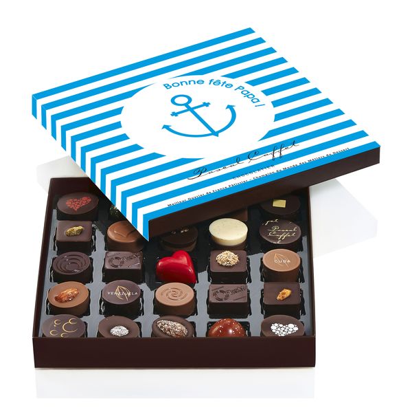 Comme toutes les années, Pascal Caffet a pensé un coffret dédié à la Fêtes des Pères : Rayures Marines. En effet, le chocolatier ne se prive pas de toutes les occasions qui lui permettent de revisiter le chocolat et faire passer des moments inoubliables aux amoureux de chocolat. A l’intérieur de ce coffret, un assortiment de ganaches savoureuses, pralinés uniques et de fondantes pâtes d’amandes dont seul Pascal Caffet a le secret de fabrication. La création Air Marin est un mélange de délicatesse et d’aventure pour les papas navigateurs. Ces créations sont à savourer en famille ou tout seul.