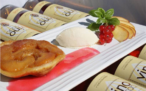 Facile - Préparation : 40 minutes , pour 6 personnes La Tarte aux Pêches « mi-Tatin mi-Melba » coulis de groseilles et glaces à la Vanille Deux très grands classiques de la pâtisserie française traditionnelle revisités en un dessert : La tarte Tatin et la Pêche Melba. Très simple à réaliser, ce dessert d’été peu se consommer...