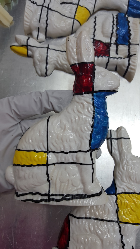 Dès le début, Mélissa avait joué avec les moules et les couleurs. Et rien n’a changé depuis. Se côtoient dans ses rayonnages des bols en chocolat et des lapins en chocolat style Mondrian… Après trois premières années d’essais, de réussites et d’échec, Pixie Dust est maintenant une entreprise bien installée qui continue de se développer avec par exemple une nouvelle gamme de truffe à venir.b[