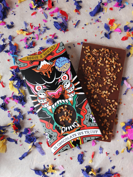 Lors du Mondial du Tatouage qui aura lieu du 15 au 17 février 2019à la Grande Halle de la Villette de Paris est une occasion pour le chocolatier Edwart et le tatoueur Eddie Czaicki de présenter leur passion respective en créant une tablette exceptionnelle. Ces derniers ont conçu une tablette Eddie X Edwart que les passionnés de friandises et de tatouage pourront déguster sans modération. Eddie X Edwart est une tablette de chocolat au lait ‘Grand Cru’ produite à partir de fèves de cacao provenant de Tanzanie et des noisettes caramélisés. L’emballage est un chef d’œuvre fait par les mains experte du tatoueur Eddie Czaicki. Cette création est un véritable voyage aux cœurs des saveurs intenses et délicates du chocolat le tout dans un étui évocateur et révélateur du savoir-faire du chocolatier et tatoueur. Pour valoriser leurs collaborations, ils offrent un tatouage de 300 euros réalisé par Eddie Czaicki pour les trois personnes qui découvriront l’un des trois tickets d’or glissé dansles trois tablettes Eddie X Edwart.