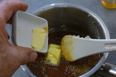 - Passer au chinois, ajouter le beurre et la trimoline,