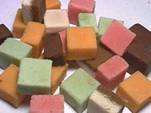 - Mélanger les amandes légèrement broyées, faire mousser légèrement, puis ajouter les écorces de pamplemousses confites coupées en petits morceaux et refroidir sur un marbre,