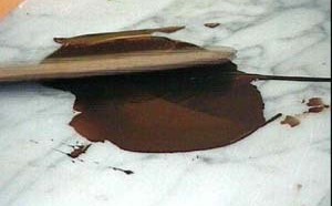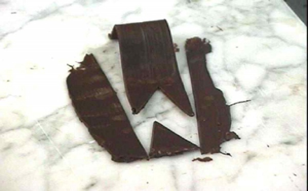 Pas très difficile et beaucoup d’effet. Mettre le chocolat à bonne température, au préalable une plaque a été disposer au congélateur. - Sortir la plaque, - préparer sa palette et étaler un peu de chocolat en ovale, - une fois le chocolat pratiquement figé, - décoller avec la palette le chocolat - puis découper un bande de...