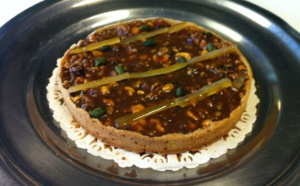Pour 4 Personnes temps : 20min Cuisson : 25 min à 220°C (th.7) Difficile : Budget : Ingrédients: 3 cs de pignons de pin 2 cs de noisettes décortiquées Une dizaine de cerneaux de noix 200 g de chocolat 200 ml de crème liquide 1 pâte sablée Pour le caramel 50 g de sucre en poudre 1 cs d’eau 25 g de beurre 25 ml de crème liquide...