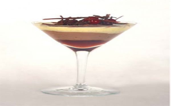 Thierry VERRAT, chef cuisinier au Restaurant La Ribaudière, à Bourg-Charente (16) Ingrédients Pour 8 personnes Crème anglaise • ½ l de lait • 5 jaunes d’œufs • 125 g de sucre • 1 gousse de vanille Marquise • 5 jaunes d’œufs • 230 g de sucre glace • 100 g de chocolat fondu • 130 g de beurre pommade • 60 g de cacao en poudre • ½...