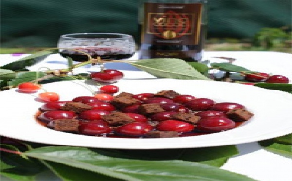 ●○○○○ Très Facile Préparation : 15 à 20 minutes Ingrédients pour 4 personnes : 4 petites noix de beurre frais 8 cuillères à soupe de sucre en poudre 75 cl de VinoCacao® NOIR™ 600 g de Cerises bien mûres 4 tranches de moelleux au chocolat (en guise de croûtons) 1 tablette de chocolat noir (pour les copeaux de chocolat) Que boire...