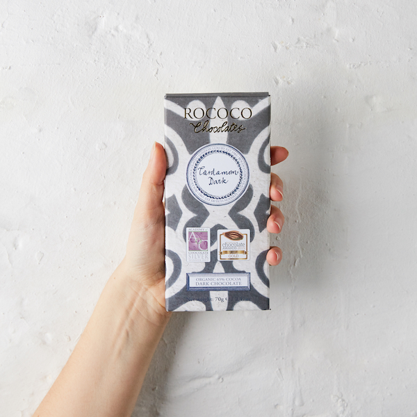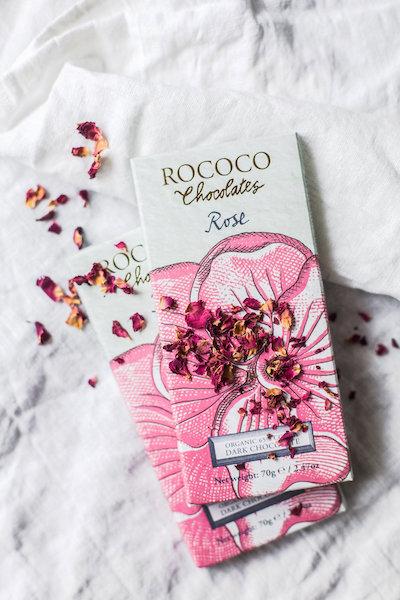 Pour Rococo Chocolates, l’important n’est pas de suivre les tendances en matière de chocolat mais de les inventer, il n’est donc pas étonnant de rencontrer une nouvelle gamme végane parmi leur catalogue. Si la présence de produits issus de l’exploitation animale dans le chocolat paraît évidente à la plupart, elle ne l’est pourtant pas historiquement. En effet, le chocolat noir est naturellement végan car directement issu de dérivés du cacao (beurre de cacao etc…), c’est ensuite que des ingrédients d’origine animale ont été ajoutés à sa recette. Rococo Chocolates renoue donc avec la tradition tout en restant fidèle à sa volonté d’innovation. Le résultat est surprenant de diversité et autant plus satisfaisant que tous les produits sont de qualité supérieure et confectionnés à la main en petite quantité.