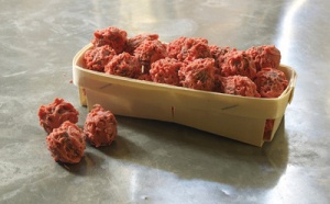 Confiserie avec un Noyau Liqueur enrobé de chocolat Blanc de couleur rose. Fabrication autour d'Avignon (on peut retrouver des produits ressemblants appelés chardon).