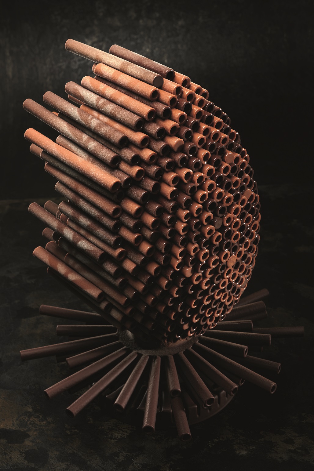 Pour les chefs pâtissiers, Pâques est l’occasion de laisser s’exprimer leur ingénieuse créativité. À cette occasion, Valrhona offre une création originale de Rémi Montagne et Léo Clavel. Avec un design hors pair, cette collection affiche une face arrondie rappelant la forme de l’œuf traditionnel de Pâques et une autre face déstructurée composée des tubes de longueurs différents. Ces tubes chocolatés s’inspirent de la flûte de Pan, l’instrument de musique emblématique du Pérou. Quant au socle en forme de soleil, il est un clin d’œil à la divinité du soleil, le Dieu Inti, ainsi qu’à la culture Inca. Les feuilles qui se dessinent sur les faces symbolisent l’éclosion des jeunes pousses au printemps. Cette gourmandise chocolatée est à contempler autant qu’à croquer !