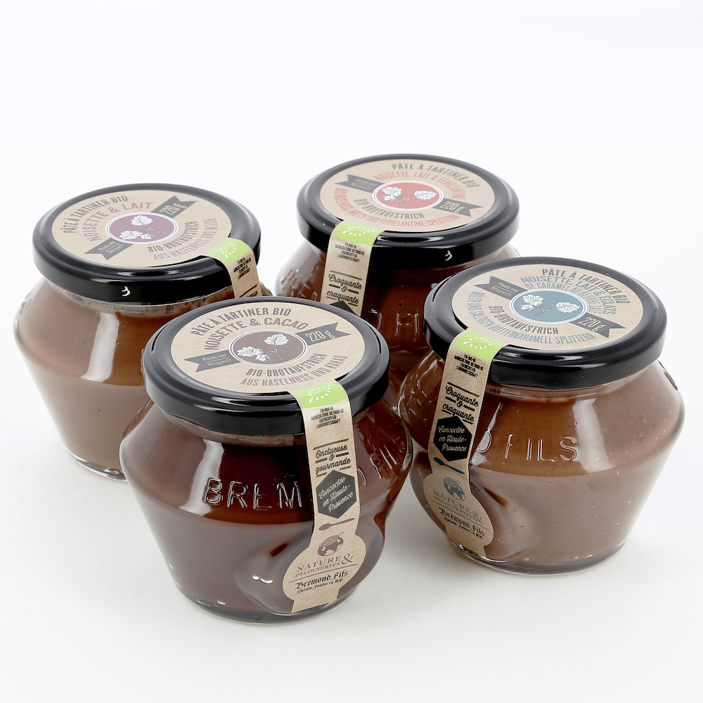 Pour rehausser le goût des crêpes faites avec le Shaker, la Maison Brémond a fabriqué des pâtes à tartiner bio. La Maison Brémond utilise des ingrédients bio délicatement sélectionnés auxquels, il associe le savoir-faire artisanal transmis de génération e génération depuis 1830. Fondé en Aix-en-Provence, la maison s’est fait connaitre grâce aux calissons d’Aix et des friandises à base d’amandes. Ce travail acharné et le savoir-faire ancestral de la maison transcende les générations afin de surprendre le palais des plus exigeants.