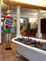 L’entrée de l’ Etruscan Chocohotel donne le ton avec une jolie baignoire îlot rétro remplie de gros morceaux de chocolats… De quoi allécher nos papilles gourmandes. L’arrivée en chambre aussi réserve une petite surprise puisque les tablettes de chocolat sont déjà présentes sur les tables de nuit, au cas où une petite faim viendrait à nous surprendre…