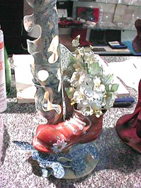 Structure en chocolat blanc et bleu avec sa chaussure et ses fleurs
